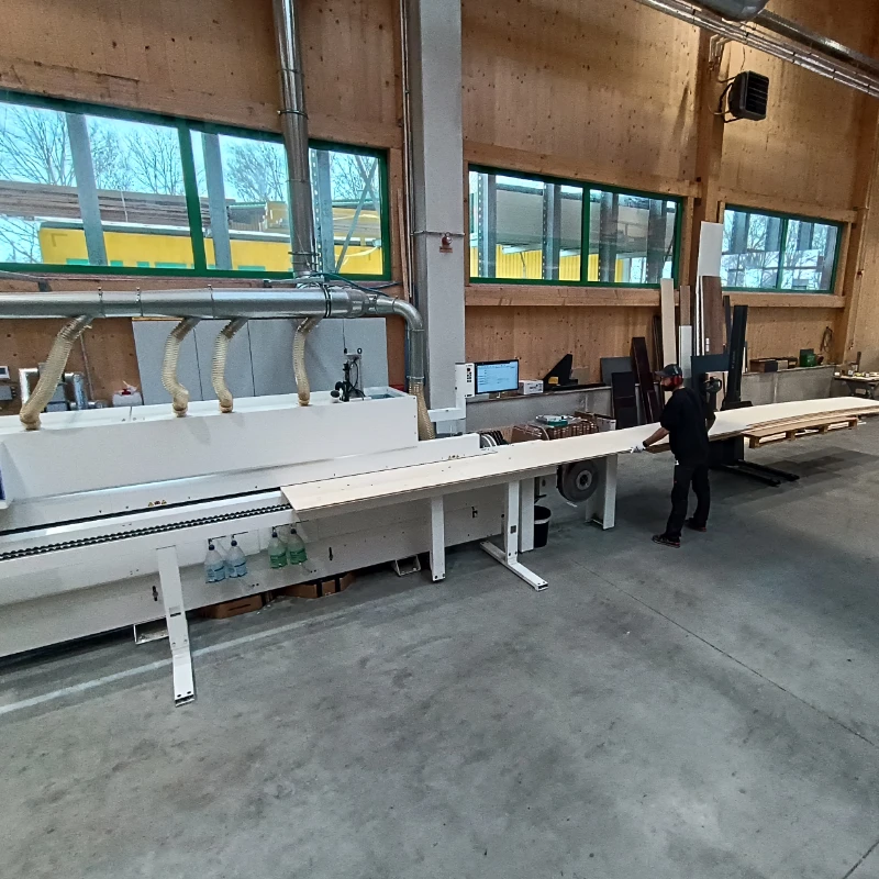 Mit der HOMAG EDGETEQ S-300 entsteht die perfekte Kante in einem Durchlauf: weniger Rüsten, weniger Nacharbeit, höhere Präzision. Fügen, Verleimen, Fräsen und Finish werden in einem Prozess gebündelt – das steigert Effizienz, verkürzt Durchlaufzeiten und senkt Stückkosten von Einzelteil bis Serie. Senden Sie uns Ihr Werkstück oder Ihre Anforderungen – wir prüfen die Machbarkeit und empfehlen den optimalen Kantenprozess inkl. Aufwand und Lieferzeit.